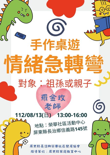 屏東縣榮華社區在112/8/13(日)辦理親子桌遊活動