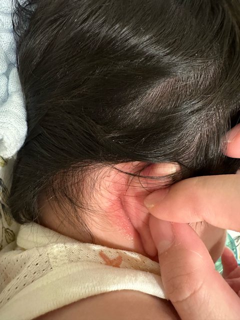 推 onetti : 寶寶頭髮蠻多的耶,盡量不要悶到耳後。07/27 18:04
