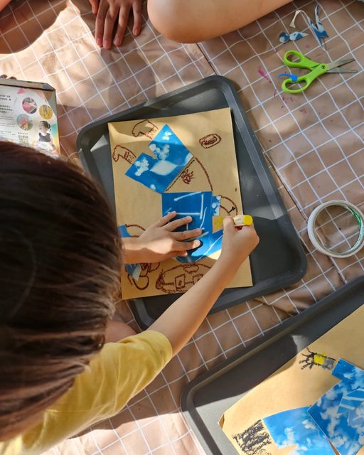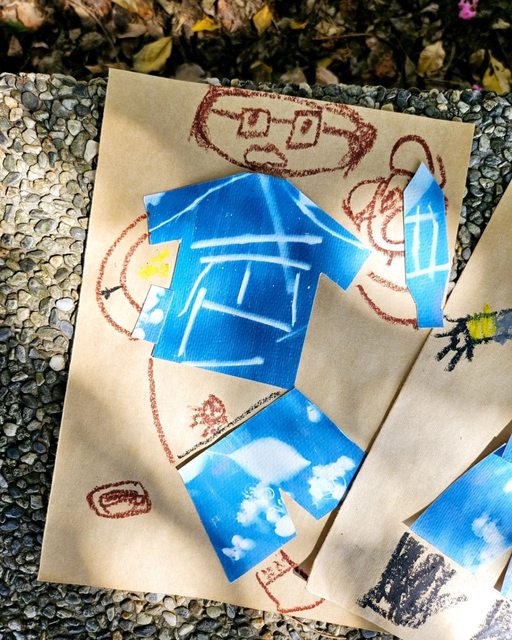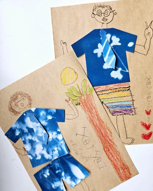 我們家的爸爸,很愛黑色。從這本書發想,用藍曬的方法,做一件充滿渡假感的花襯衫送