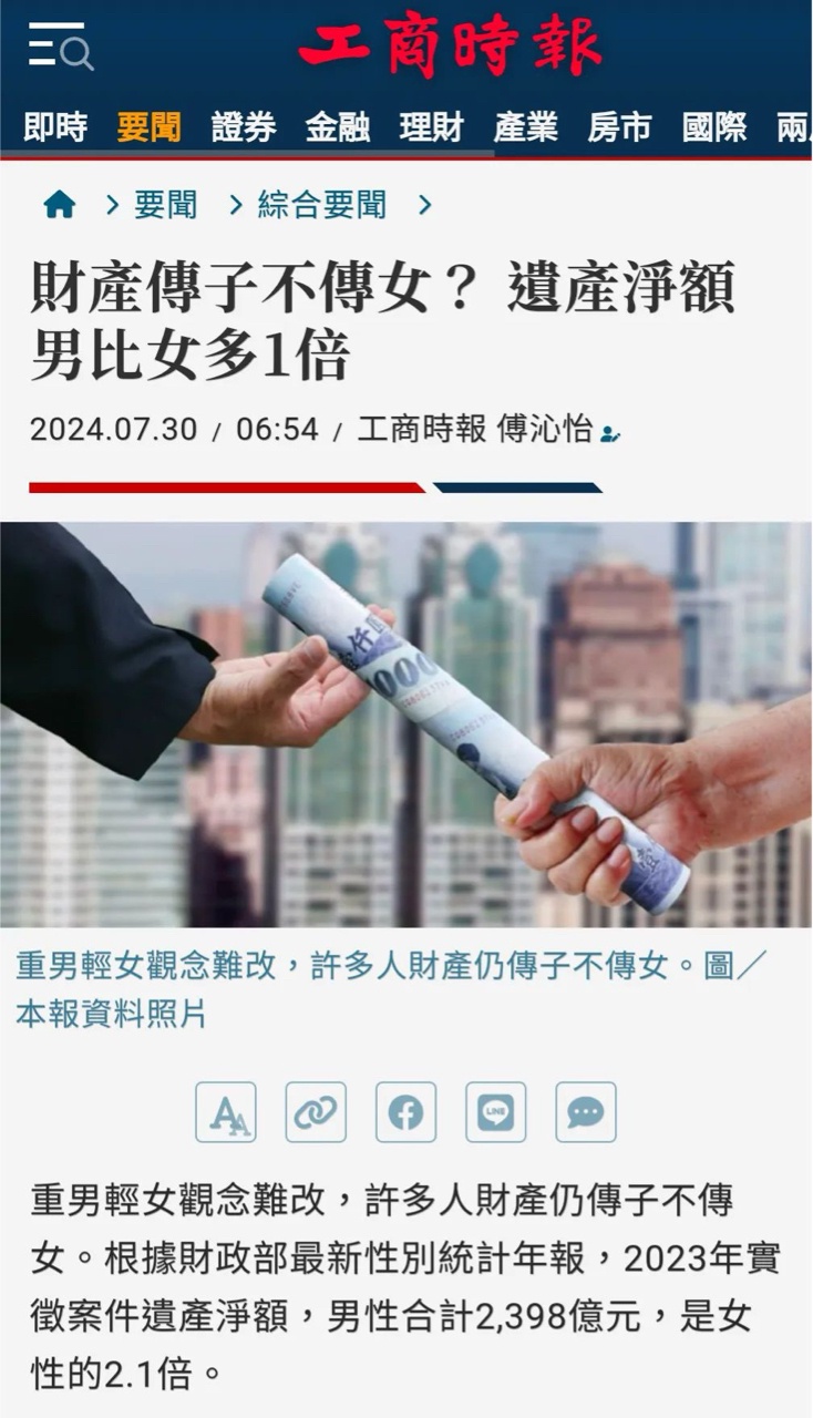 噓 yoyoyolin : 真的廢文一篇。真的沒重男輕女就不會多數家庭房產多 08/01 02:19