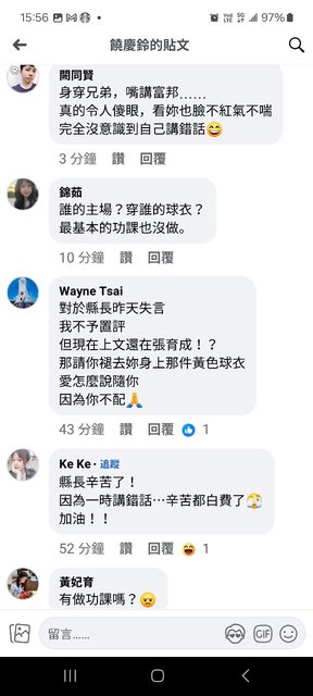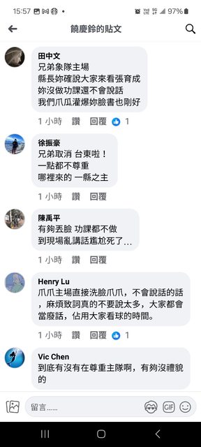 課嘛」、「不會講話就少講話」、「主客場分不清,我們是支持兄弟的好嗎」、「傻眼呢
