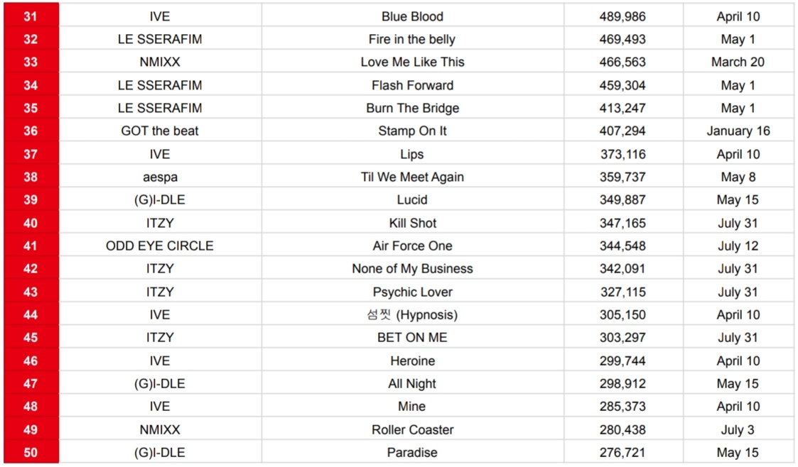 → cching1021: 兩個後輩女團就很不樂觀 首日主打比 114.25.44.47 08/02 16:50