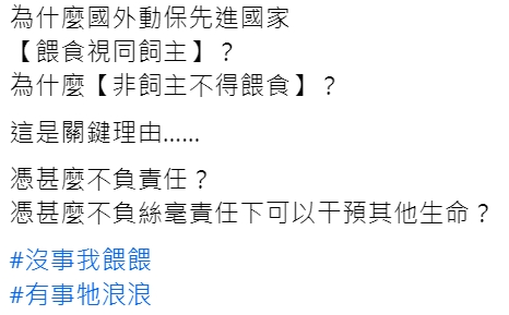 公約卡)因曾導致餵養人士和居民衝突,未來會以勸導及輔導為主,要求乾淨餵養及慎選