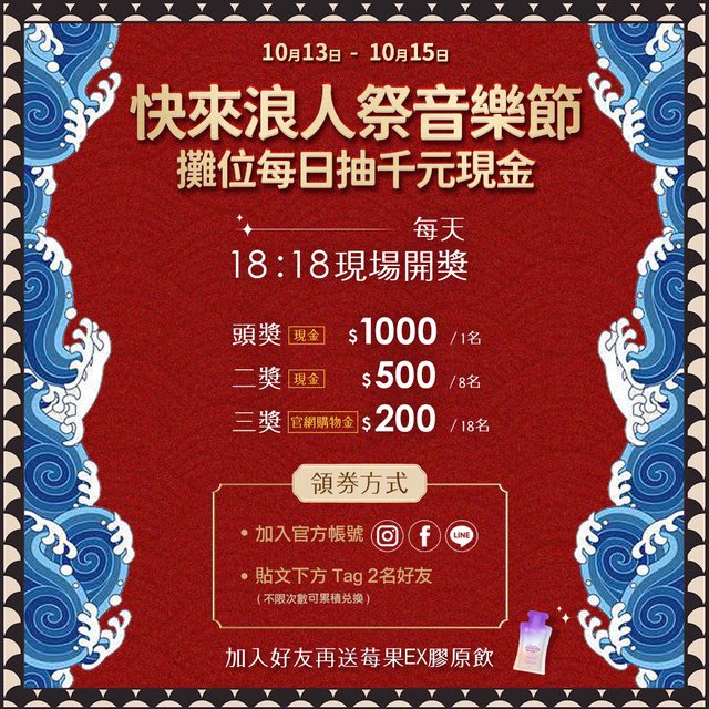 推 pingu0427: 抽到現金會很爽欸 味丹拜託抽我!我會去音樂節 10/13 23:55
