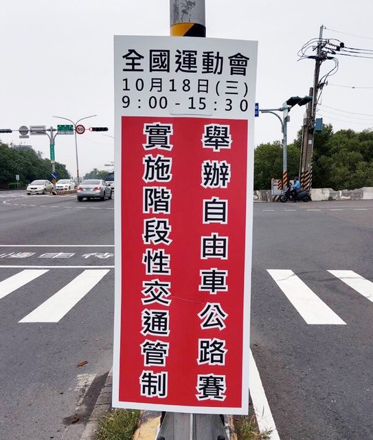 處於安明路沿線設置交通管制告示牌,提醒民眾於賽事時段