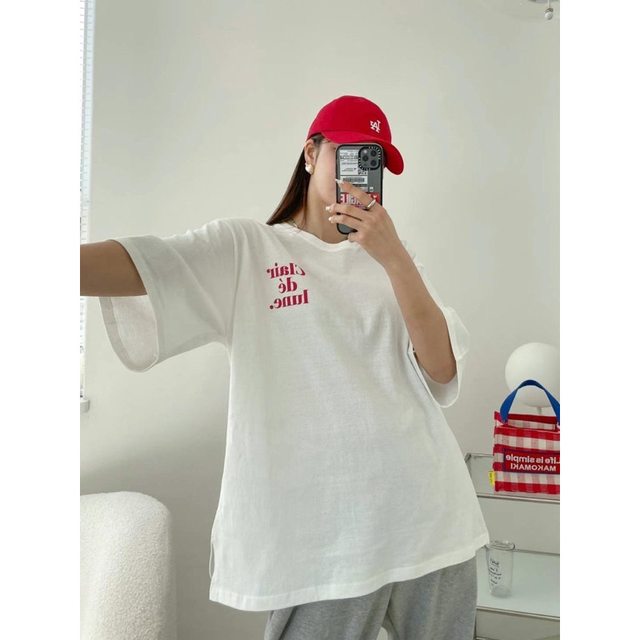 3.二手 正韓Clair 前後英文字母寬版開衩T $150