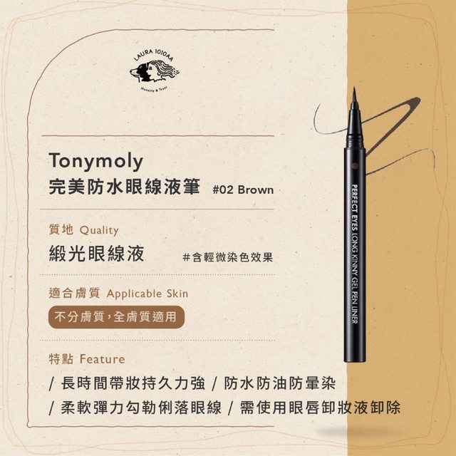 20.二手 Laura1010aa / Tonymoly 完美防水眼線液筆(棕)$200