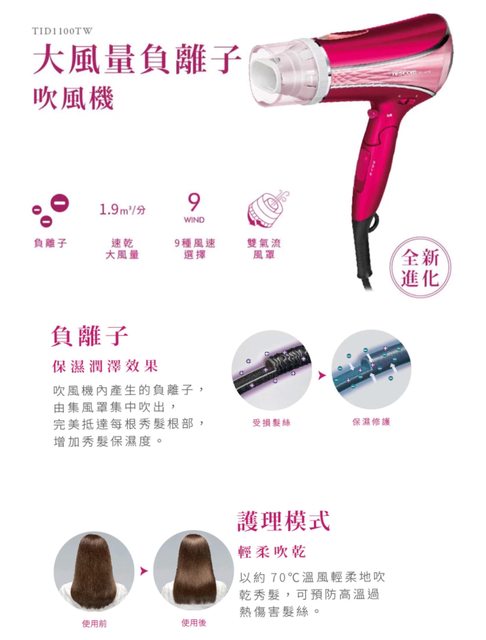5.【TESCOM】TID1100 最新負離子吹風機/1.9高效速乾大風量 $950
