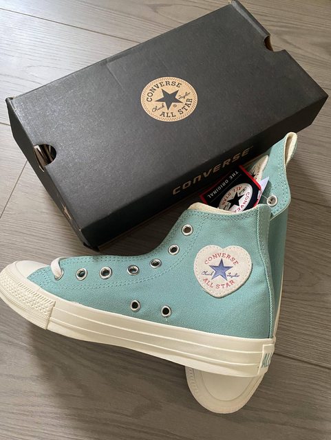2. Converse 日本限定愛心標Tiffany 藍高筒帆布鞋