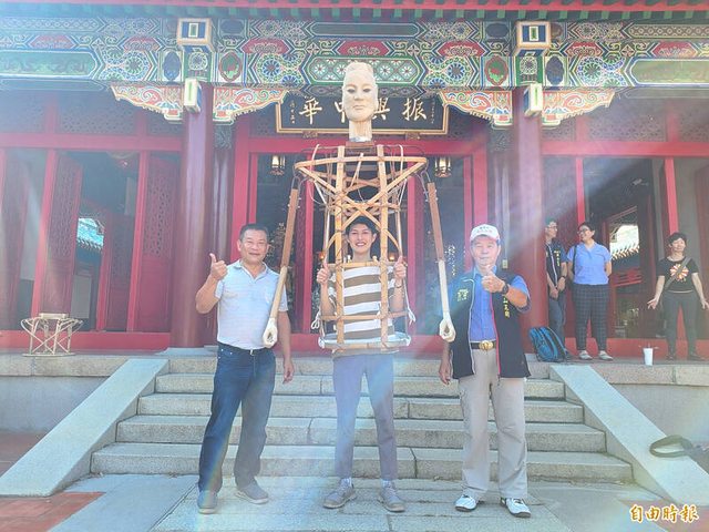 陳進祥說,大型神偶整體是由竹製骨架撐起,臉部為木雕,每尊高約330公分,裸骨架就