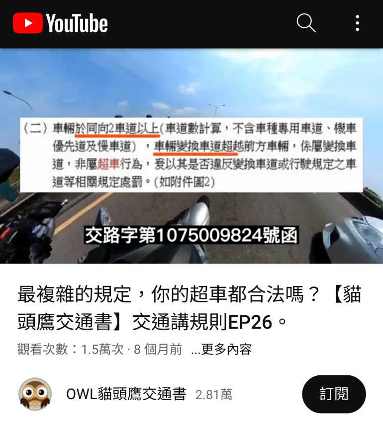 推 EFERO: 台灣的交通法規有定義“超越”嗎 我查不到 12/14 10:47