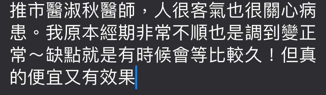 請問有推薦的中醫師嗎?主要是女性調身體,月經不順的問題,東區仁德最佳,爬文有找到呂美娜、震暘堂,請問還有別家推薦的嗎,感謝!