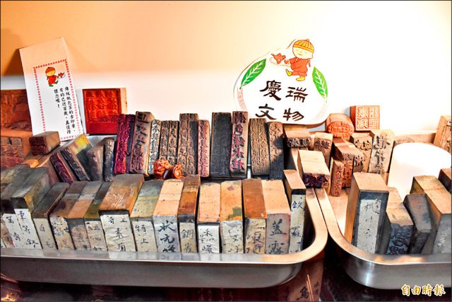 新營慶瑞茶莊的早年店章都很有年代。(記者楊金城攝)