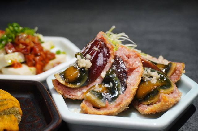 店家把這道我個人很喜歡的菜加入豬肉香腸內餡裹住皮蛋,