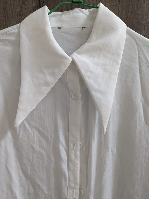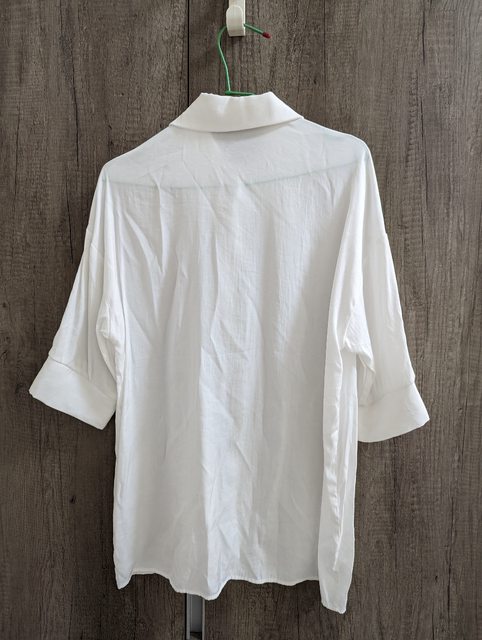 8.大尖領落肩五分袖白襯衫 衣長70 寬48 袖長37cm $100