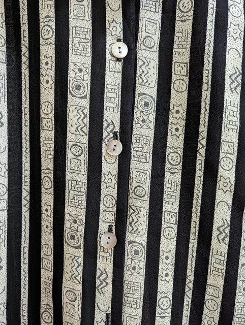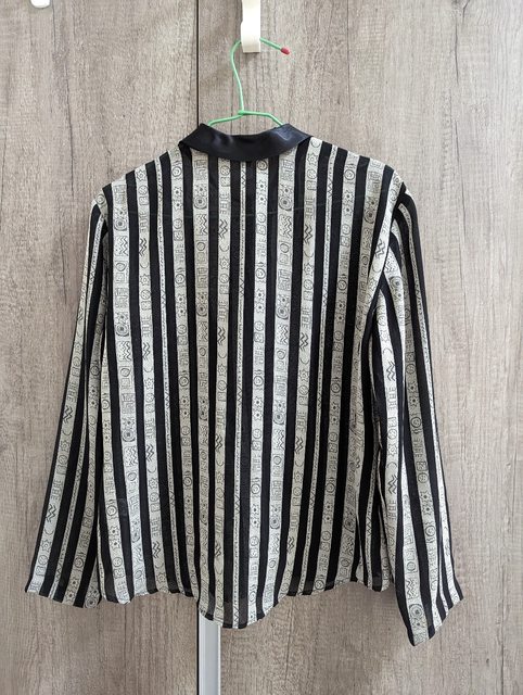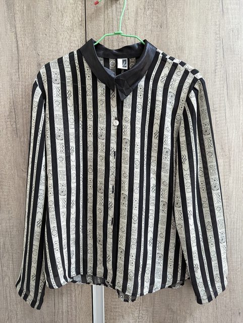 4. 微透膚幾何圖騰直條紋古著襯衫 衣長55寬40袖長53cm $200