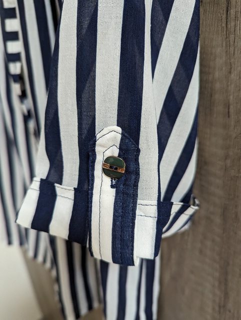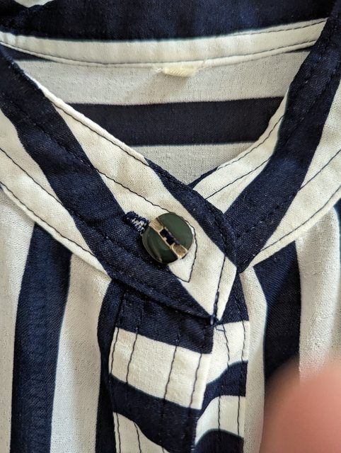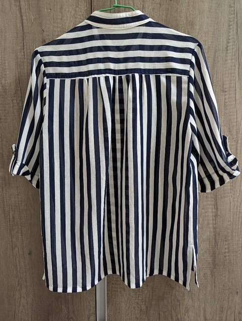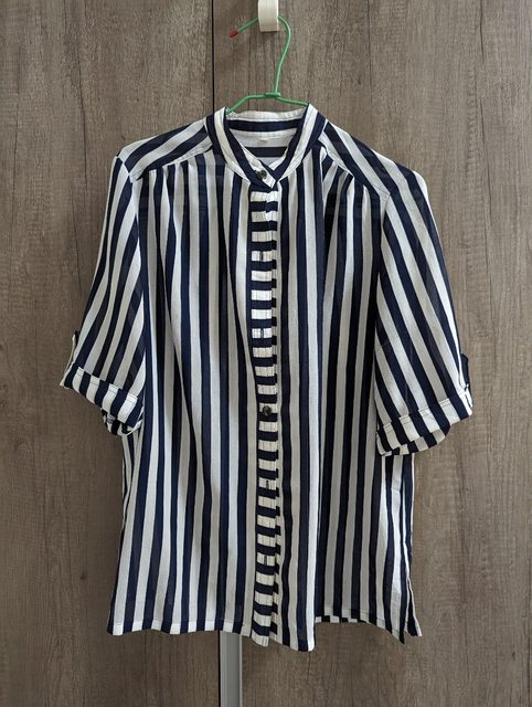 5.藍白直條紋五分袖透膚古著襯衫 衣長60 寬45 袖長30cm $200