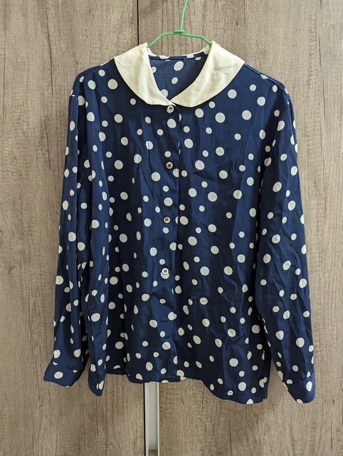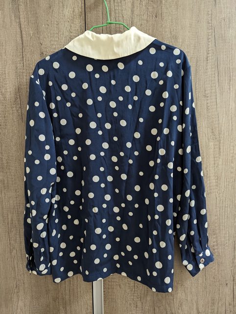 7.藍色點點古著襯衫 長62寬46袖長54cm $200