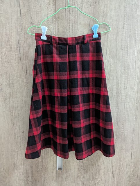 9.紅黑格紋中長裙 腰30 長60 裙擺寬67cm $100