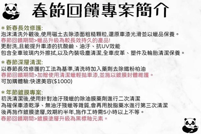標題[自家] 熊貓洗車工坊 春節回饋活動~
