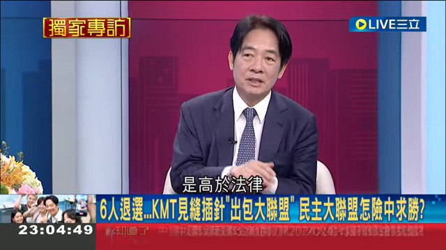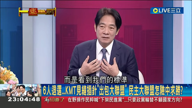 → nightwing: 民進黨總統參選人賴清德接受專訪時,稱自己的標準高於 12/19 11:41