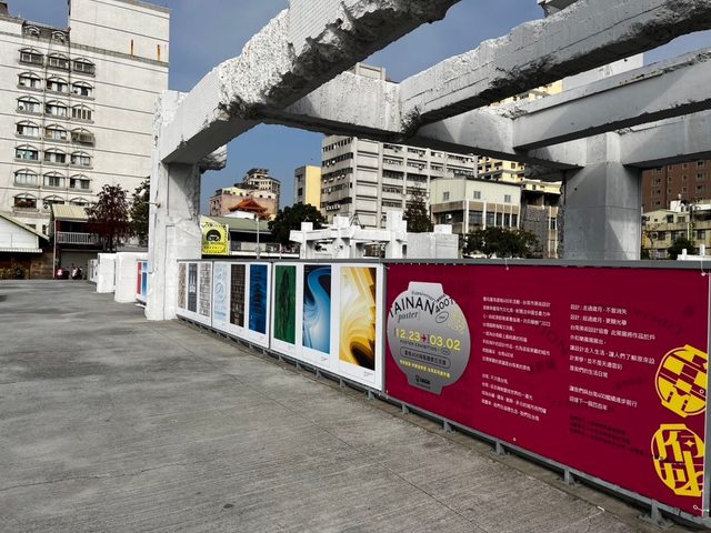 河樂廣場化身為展場,展示「台南400海報國際交流展」的