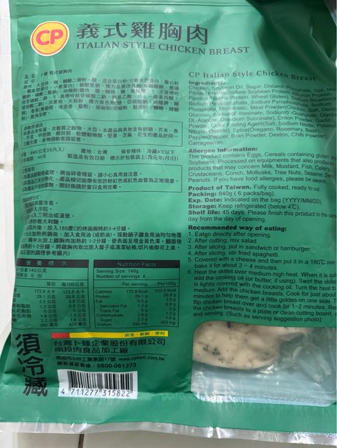 義式雞胸肉開封後只拆了一包,尚有兩包(獨立包裝),效期到2024/1//5