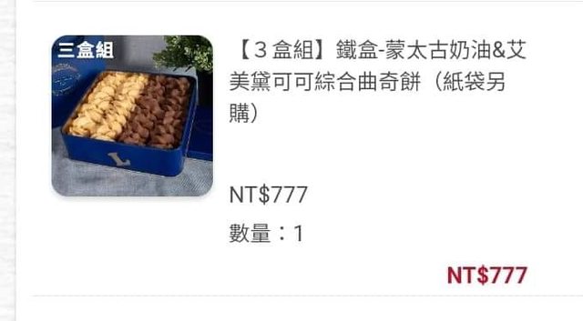 已訂購綜合曲奇餅,欲售出2盒,每盒259元