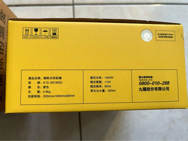 標題[交易] 九陽莎莉瞬熱式即飲機K15-S01M(S)+水