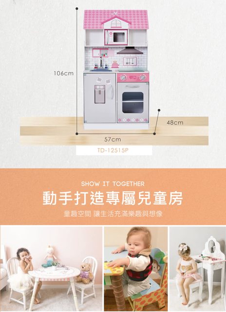 標題[贈送] 2合1木製娃娃屋廚房組