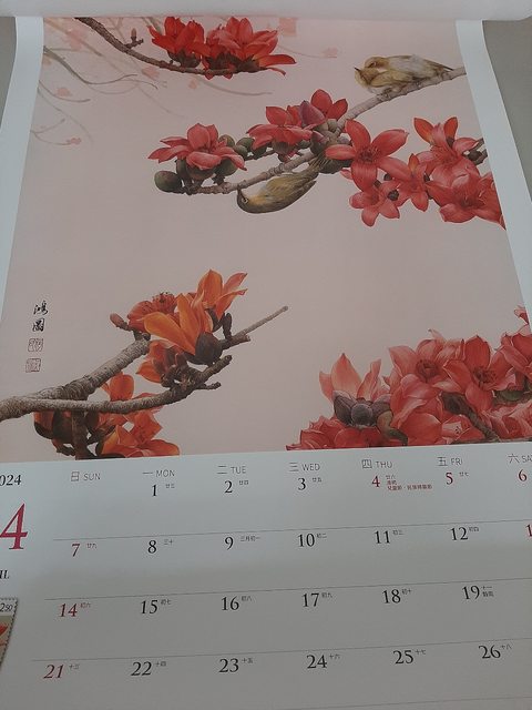 中華郵政2024年月曆 , 以郵票設計師柯鴻圖先生的創作為題材,結合臺灣當季花卉素材