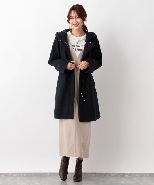 GLOBAL WORK羊毛連帽長版大衣(尺寸L)