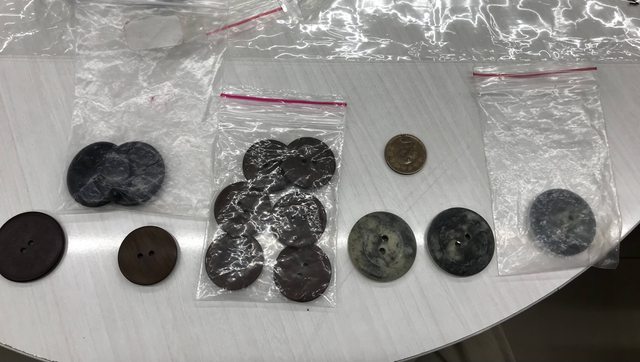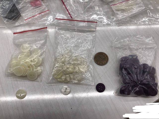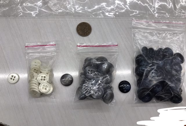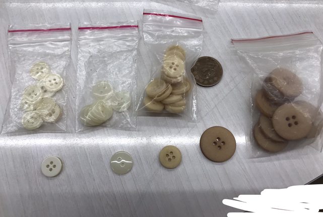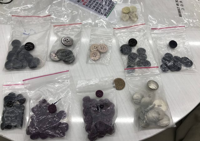 交易物品:照片中的鈕扣,有塑膠鈕扣、貝殼鈕扣、木紋鈕扣等等。