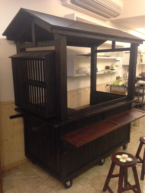 上下座是可分離的,原本要來擺攤使用,後來製作完成後因為種種原因而放棄。餐車因此