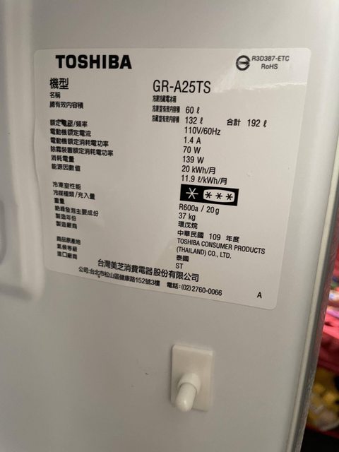 1.東芝192公升變頻冰箱,使用2年多約9成新,售5500(已售出)