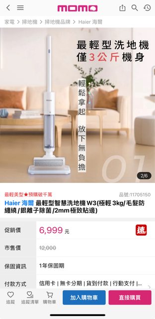 查momo購物網賣6999 ,預售6000