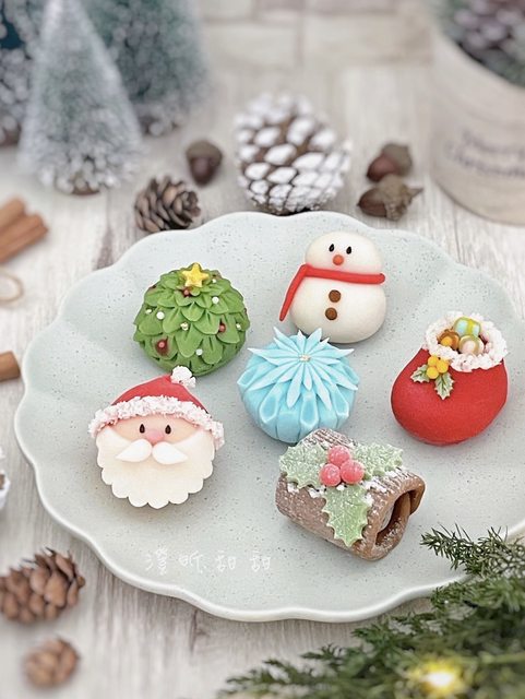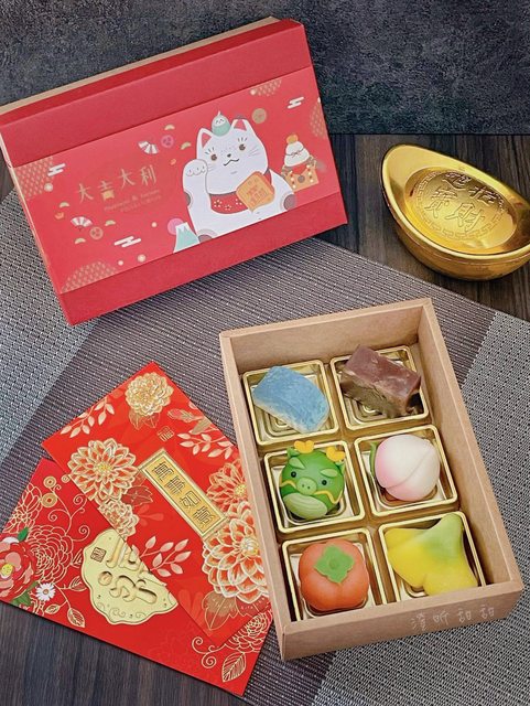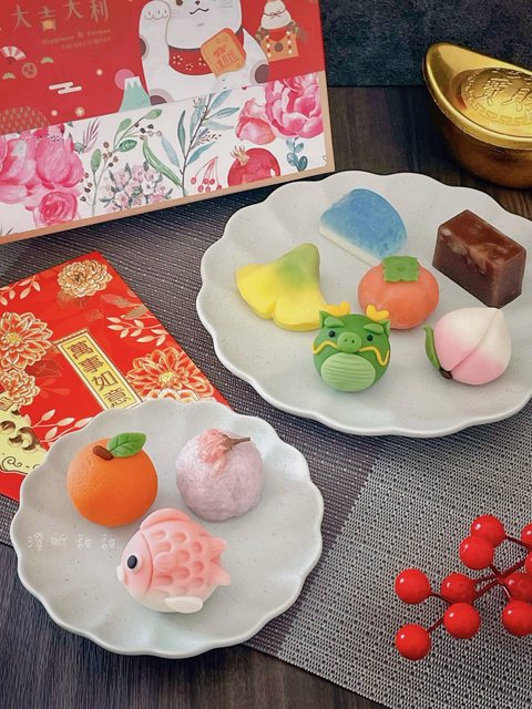 台灣產米穀粉、紅豆餡、白豆沙、砂糖、海藻糖、水果、茶粉等製作