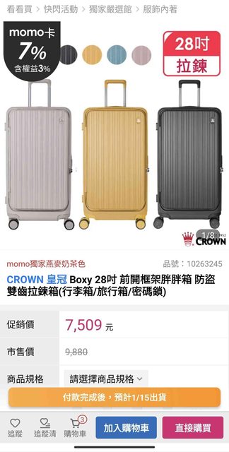 標題[交易] 售CROWN28"前開式行李箱(桔黃色)