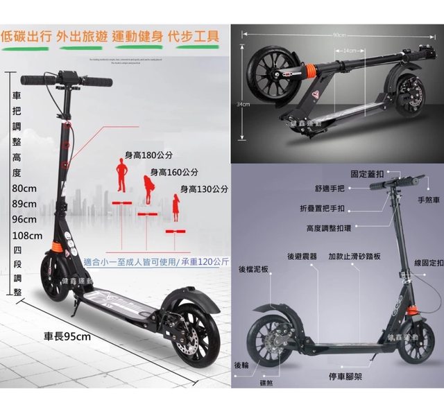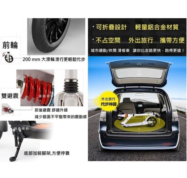 ☆健鑫運動☆一秒折疊【手煞碟煞+前後雙避震】城市滑板車 通勤代步車 滑板車 青少