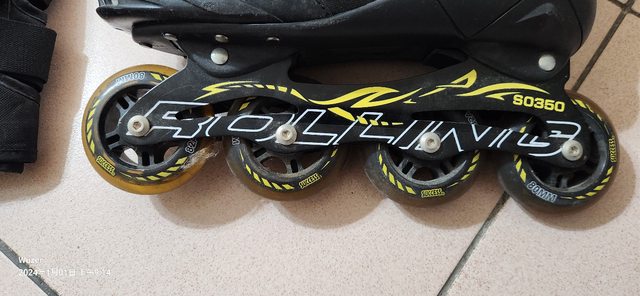 交易物品/金額/說明:迪卡儂購入的41號成人直排輪及護具組(XL)/共1800元/原購入陪同