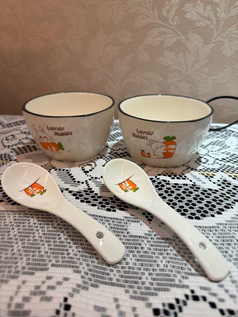 3.全新樂曼尼迷人兔方型碗匙組,一組2套100元,一共有三組