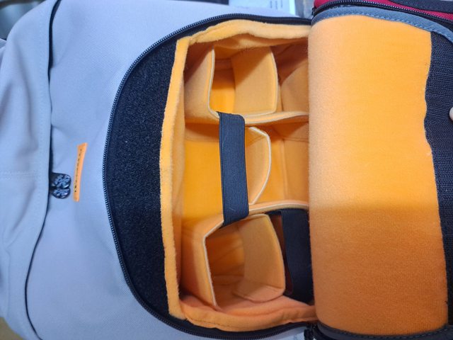 1. 小野人後背包,雙倉設計,旁邊有個污垢