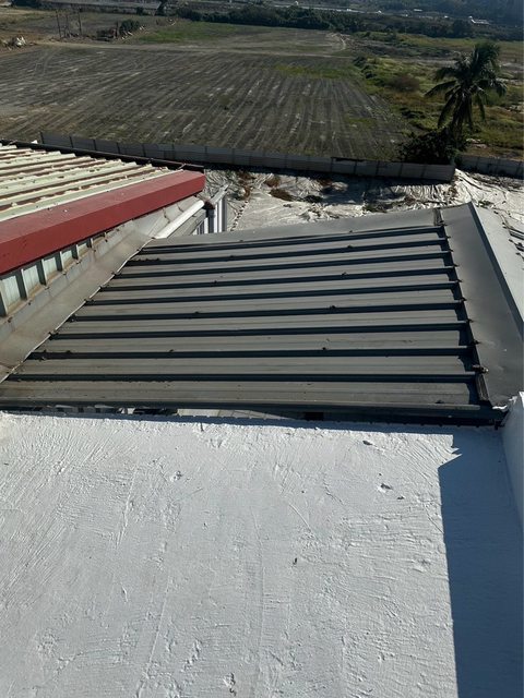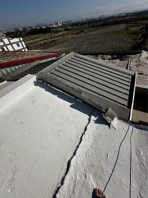 防水施工後,建物跟陽台上方的鐵皮有個縫隙