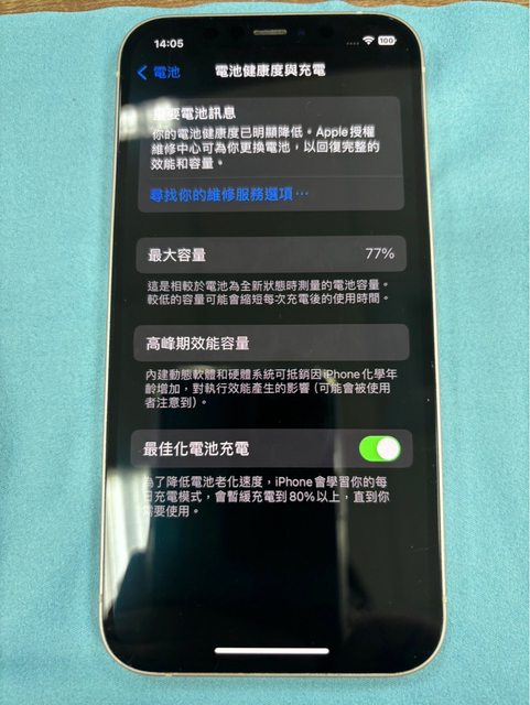 物品狀況:電池健康77%,沒有維修過,平常有裝殼