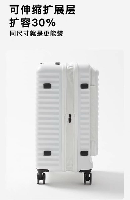 行李箱可擴展,擴展後會增加5-6cm厚度,可以再多裝約30%東西