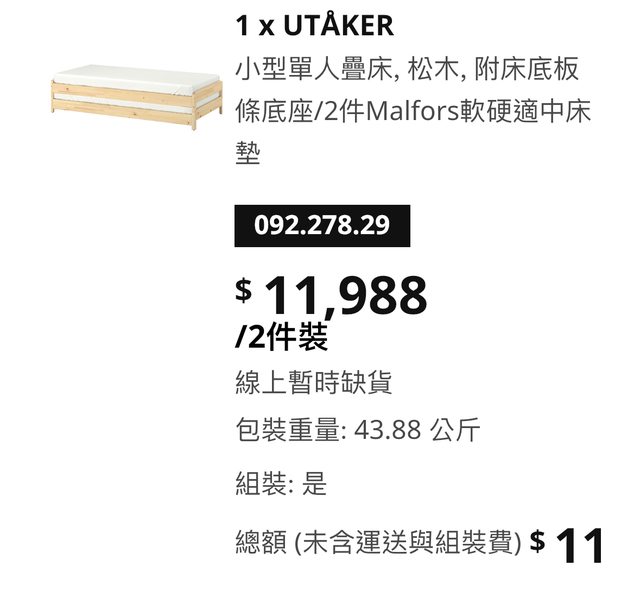 標題[交易] ikea單人床架送床墊
