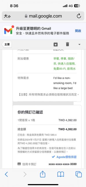 當初在Agoda上面訂4300多(有圖為證)