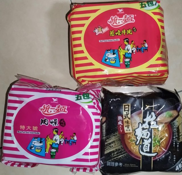 7. 拉麵道有2袋,統一肉燥麵有2袋,牛肉麵有2袋,全部一袋60元,有效期限為2024/5-6