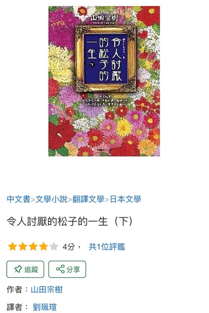 標題[徵求] 購買「令人討厭的松子的ㄧ生」小說