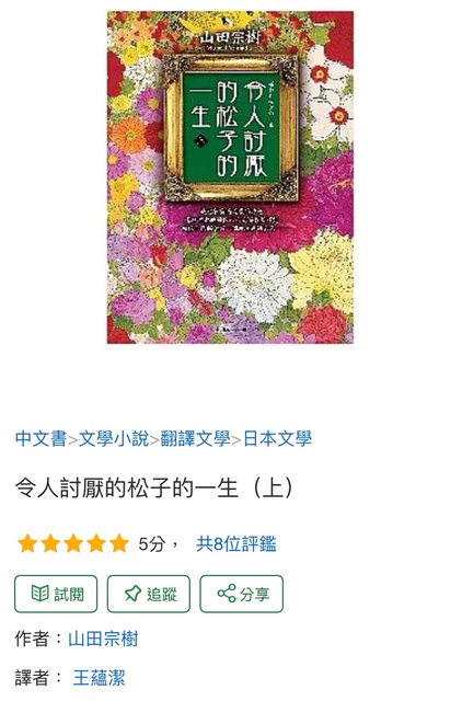 徵求類別: 購買「令人討厭的松子的ㄧ生」小說上下冊